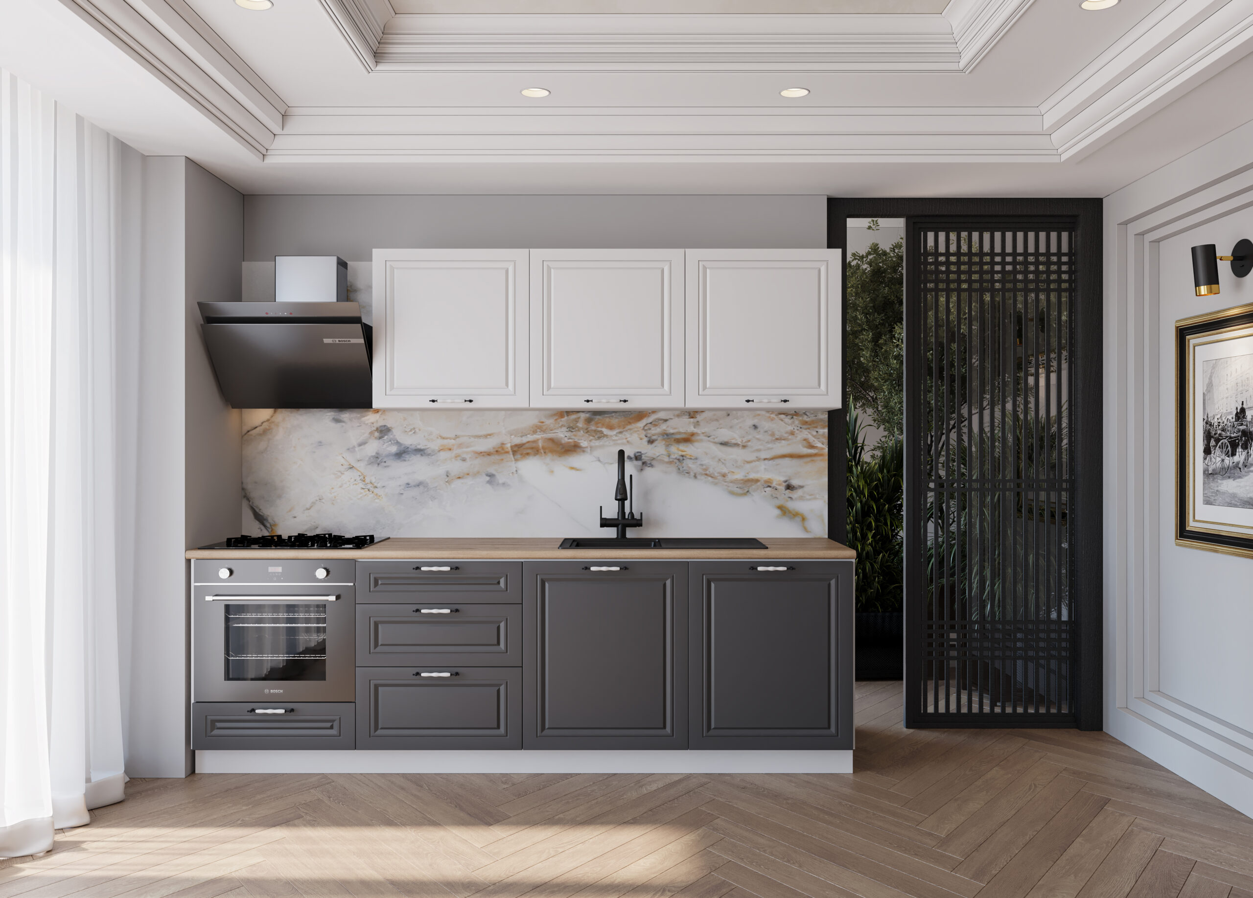 ürün özellikleri : üst modüller( 60cm davlumbaz boşluğu ) 60cm + 60cm + 60 cm= 240cm alt modüller : (60cm ankastre) + 60cm(çekmece) + 60 cm + 60 cm = 240cm malzeme : gövde 18 mm 1.kalite mdf kullanılmıştır. kapaklar 18 mm membran dır. not: membran kapak nedir : membran kapak, pvc membranların tek yüz ham mdf yüzeyine preslenmesi ile elde edilen kapak türüdür. membran kapakların imalatında kullanılan pvc membranlar, dünya sağlık örgütü (who) tarafından onaylanmış, antibakteriyel ve sağlıklı folyolardır. kansejoren madde içermezler. kurulum sırasında tüm modüllerin yerleri değiştirilerek kullanılabilir. Görselde yer alan, eviye (lavabo), fırın, tezgah ocak, batarya, aspiratör vb. ürüne dahil değildir. ürüne özel kulplar – ve 10cm baza ürüne dahildir. kurulum da gerekli olacak el aletleri dışında tüm malzemeler (hırdavatlar) kolilenmiş vaziyette tarafınıza eksiksiz ulaşır. ürünlerimiz strafor ve karton köşebent takviyeli çift oluklu mukavva kolilerde, özenle paketlenmiş şekilde kapınıza kadar sevk edilmektedir. tüm levha parçalar numaralandırılmış olup kurulum şemasına uyumludur. – mutfak dolaplarınızın montajı daha dayanıklı ve stabil olabilmesi için kurulumunda 8mm kavela ve 5 cm vidalar kullanılmaktadır. – modüllerin arkalıkları 3 mm tek yüzlü mdfdir. – kargonuzu teslim alırken lütfen paketleri kontrol ediniz. – hasarlı kargo paketlerini teslim almayınız. – üründe üretim sırasında meydana gelmiş hatalı veya hasarlı parça ile karşılaşmanız halinde (sizdeki parçayı geri talep etmeksizin) yenisi ile değişimini sağlayabiliriz. parçanın numarası ve fotoğrafını destek birimimize iletmeniz yeterli olacaktır.
