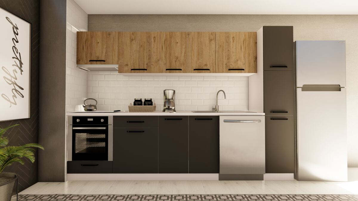 VİSAS CONCEPT _ 300 cm BAHAR HAZIR MUTFAK DOLABI ASPİRATÖR, ANKASTRE ve KİLER MODÜLLÜ ATLANTİK ÇAM ve ANTRASİT