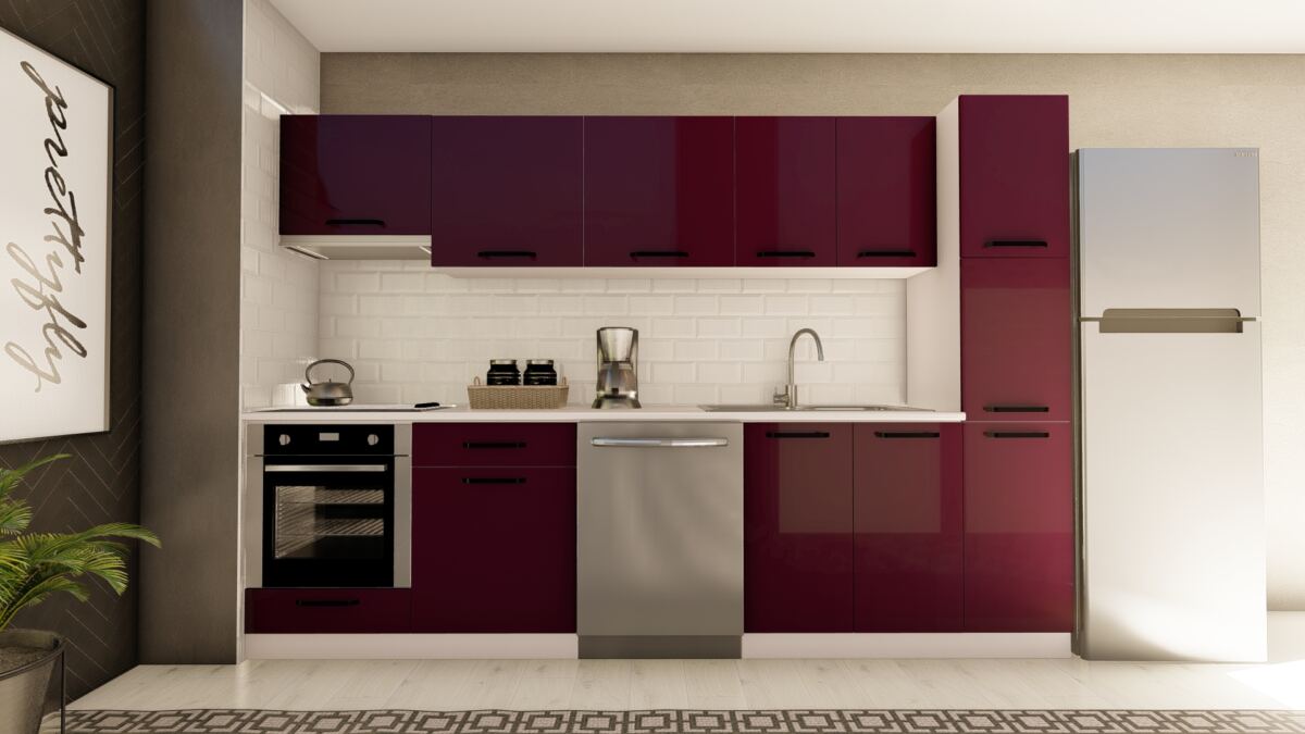 VİSAS CONCEPT _ 300 cm DESTAN HAZIR MUTFAK DOLABI ASPİRATÖR, ANKASTRE ve KİLER MODÜLLÜ PARLAK MÜRDÜM