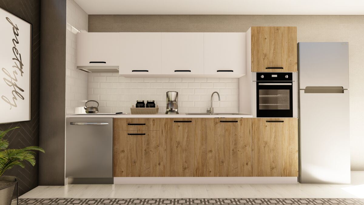 VİSAS CONCEPT _ 300 cm EFSUN HAZIR MUTFAK DOLABI ASPİRATÖR ve ANKASTRE KİLER MODÜLLÜ ATLANTİK ÇAM ve BEYAZ